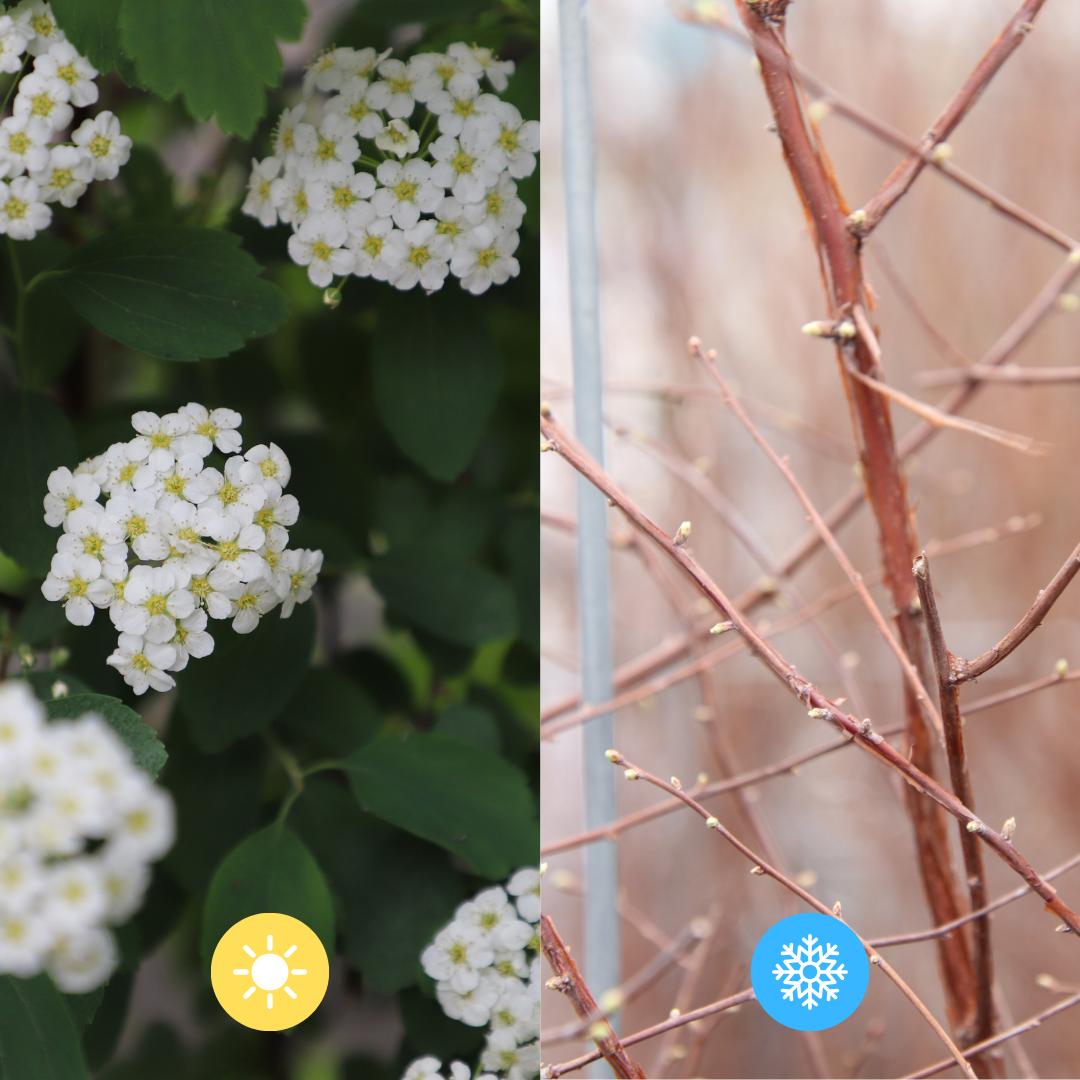 Weer- en Vervuilingsbestendig: Net zoals de traditionele Spiraea Vanhouttei, is deze kant-en-klare spierstruik bestand tegen zowel lage temperaturen als stedelijke vervuiling, waardoor hij een uitstekende keuze is voor elke tuinomgeving.